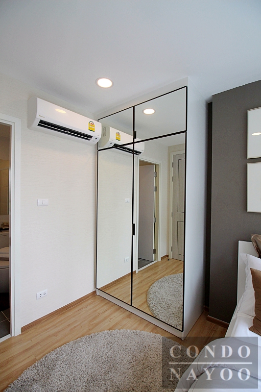 ยูนิตในโครงการจะมี 2 แบบค่ะ คือแบบ 1 ห้องนอนและแบบ 2 ห้องนอน ปรับแบบมาให้ลงตัวและมีห้องน้ำที่มีขนาดสบายๆใช้งานได้ไม่อึดอัด ตัวห้องขายแบบ Fully Fitted คือมีชุดครัวและชุดสุขภัณฑ์พร้อมฉากกั้นส่วนเปียกมาให้ เพดานห้องสูง 2.4 เมตร ไฟติดเพดานเป็นไฟดาวน์ไลท์ ผนังติดวอลเปเปอร์มาให้ พื้นห้องเป็นไม้ลามิเนตหนา 8 มม. ประตูทุกบานติด Digital Door Lock มาให้