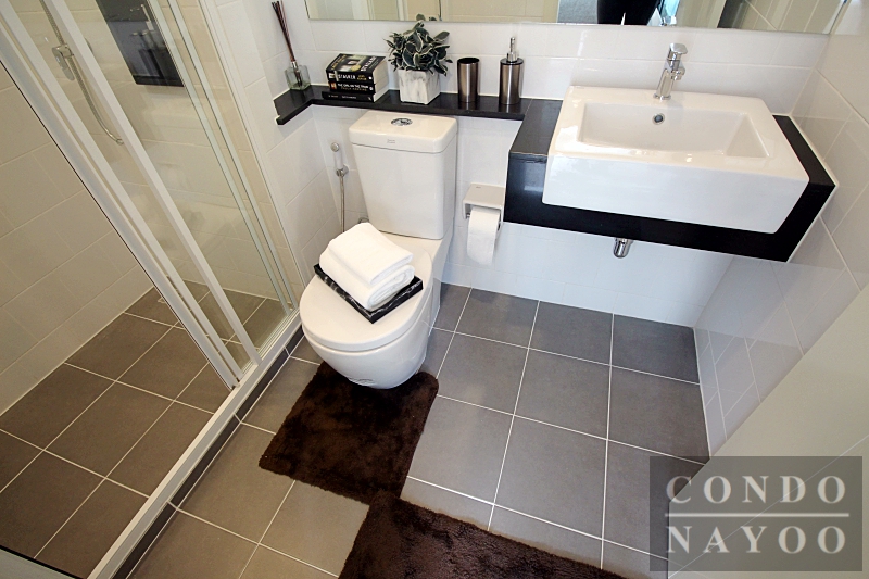 ในห้องน้ำมีประตู 2 บาน บานนึงเปิดออกไปส่วนห้องนั่งเล่นใกล้ประตูทางเข้าห้อง อีกบานเปิดไปห้องนอนได้ ทำให้จากห้องนอน เดินมาเข้าห้องน้ำได้สะดวกนั่นเอง
