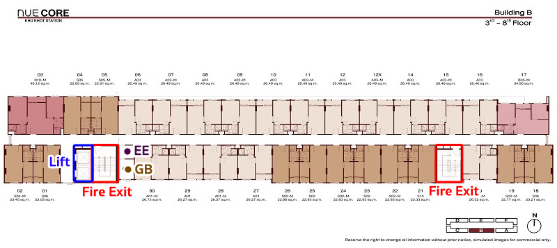 | จำนวนลิฟต์ | 2 ตัว/อาคาร |