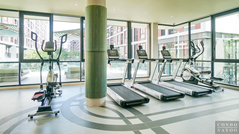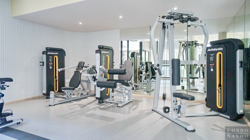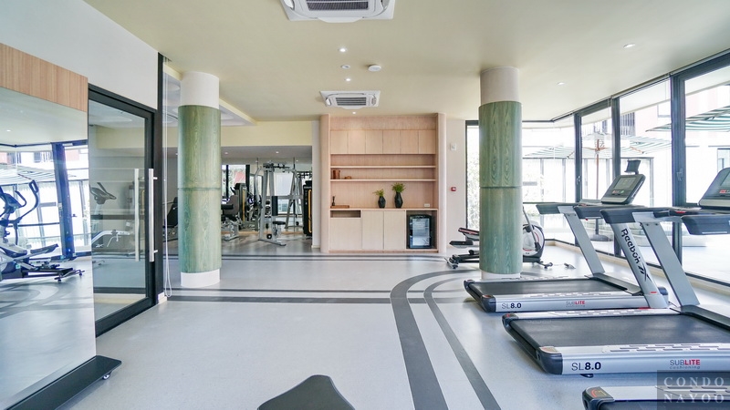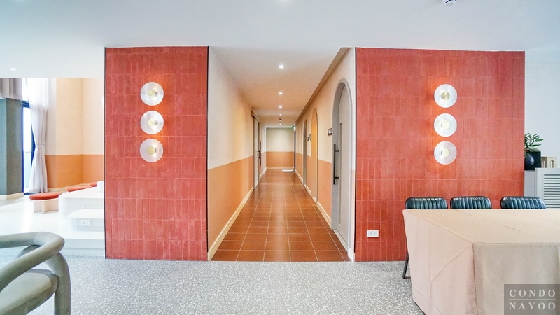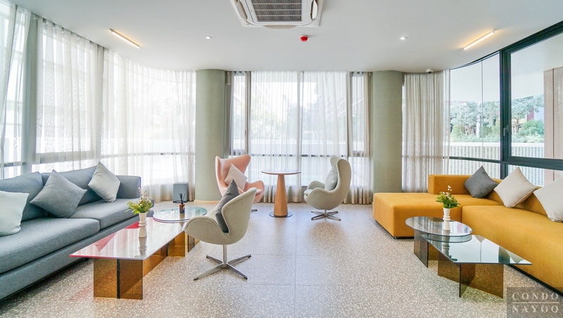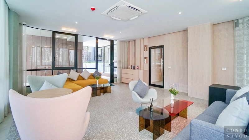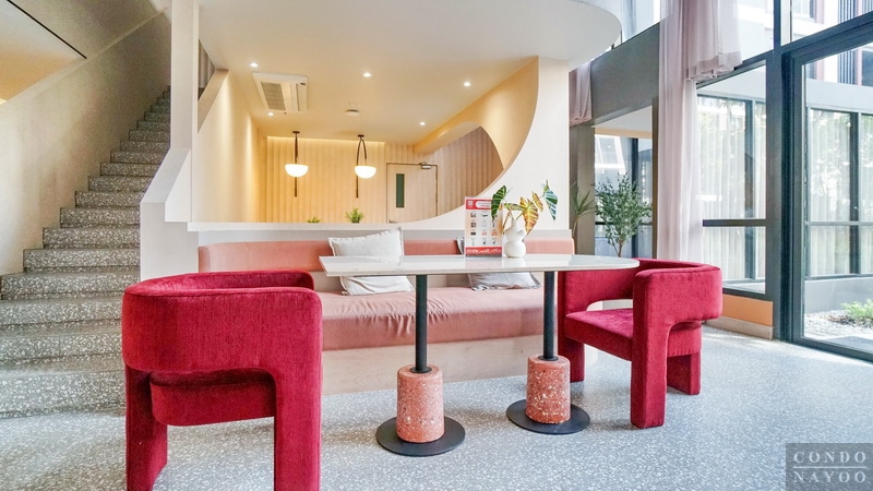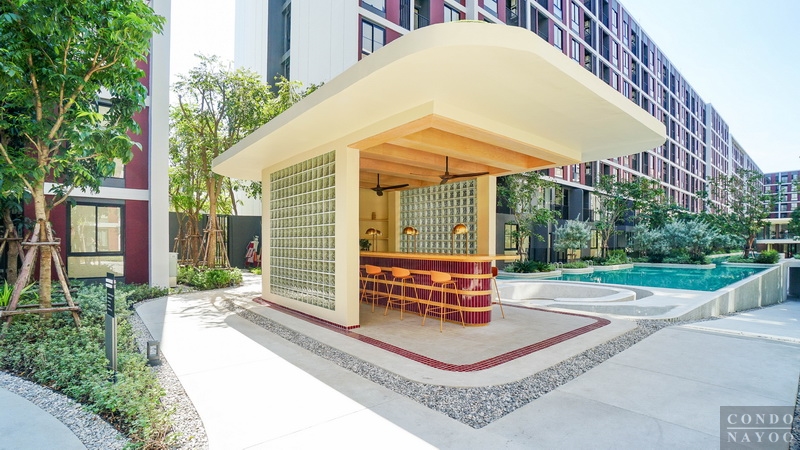 Scenery Pool Bar พื้นที่นั่งเล่นภายในศาลาริมสระว่ายน้ำ ถัดมาจะเป็น The Core Pavillion อาคาร 2 ชั้น จัดฟังก์ชันไว้อย่างครบครันทั้ง Welcome Lounge, Co-Working Space และ Fitness อุปกรณ์ครบครันทันสมัยที่ครอบคลุมทั้งการ Cardio และ Weight Training