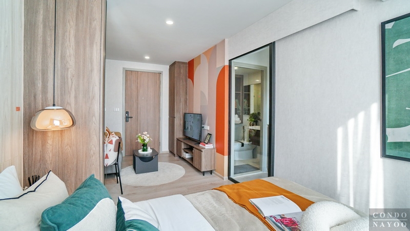 โครงการขายห้องแบบ Fully Furnished ให้มาครบทั้งเฟอร์นิเจอร์แบบ Built-in และแบบลอยตัว โดยเน้นไปในโทนลายไม้สี Dark Cornwall Oak และสี Earth Tone ทั้งยังสอดแทรกความเป็น Geographic Form ด้วยเฟอร์นิเจอร์รูปทรงเลขาคณิตเข้าไปด้วย ช่วยให้ห้องพักดูสวยงาม คุม Mood & Tone ระหว่างอาคารและห้องพักเข้าไว้ได้อย่างลงตัว