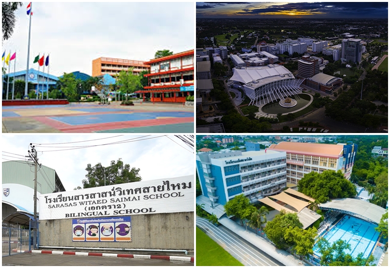 รร.บริบูรณ์ศิลป์รังสิต, รร.โชคชัย รังสิต, รร.นานาชาติ สยาม, รร.บีคอนเฮาส์แย้มสอาด รังสิต, รร.เปรมฤทัย ลำลูกกา, รร.นวมินทราชินูทิศ เบญจมราชาลัย, รร.เตรียมอุดมศึกษาฯ ปทุมธานี, ม.เวสเทิร์น วิทยาเขตกรุงเทพ-วัชรพล, ม.นอร์ทกรุงเทพ, ม.รังสิต, ม.อีสเทิร์นเอเชีย, มทร.ธัญบุรี เป็นต้น
