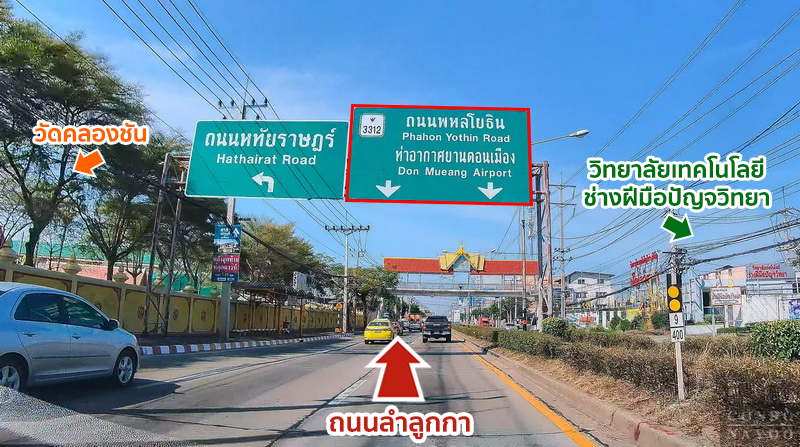 ขับตรงเรื่อย ๆ บนถนนลำลูกกาผ่านวัดคลองชันและวิทยาลัยเทคโนโลยีช่างฝีมือปัญจวิทยา จากนั้นตามป้ายไปทางถนนพหลโยธิน-ดอนเมือง