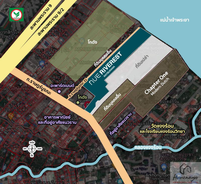 โดยใกล้ ๆ กับโครงการจะมีโครงการเพื่อนบ้านที่สร้างเสร็จไปแล้วกว่า 7 ปี อย่าง Chapter One Modern Dutch ส่วนรอบ ๆ โครงการจะเป็นที่ดินบุคคลอื่น สลับที่อยู่อาศัยแนวราบดั้งเดิม และโกดังเก็บของริมแม่น้ำค่ะ