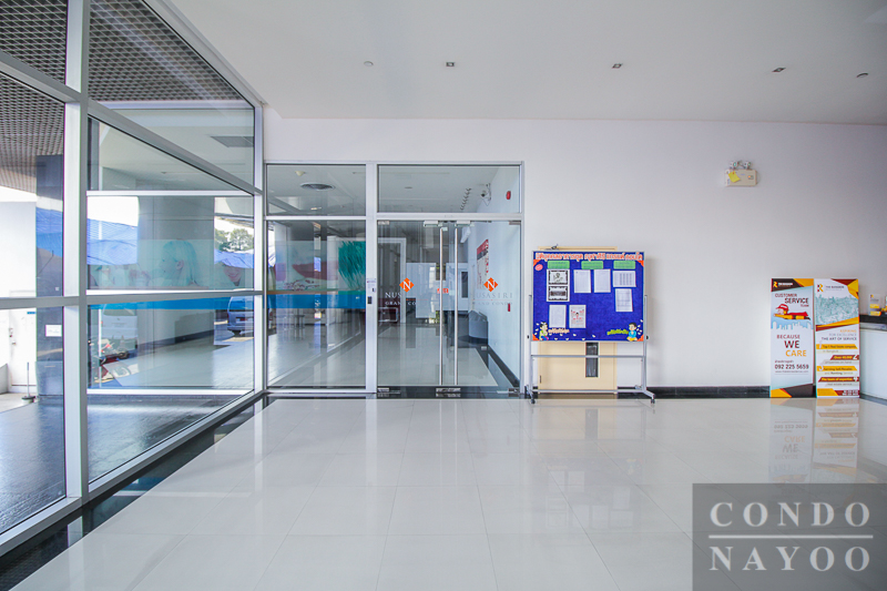 มองไปทางขวา จะไม่มีรั้วนะ เพราะชั้นล่างเปิดให้คนภายนอกเข้ามาใช้บริการได้