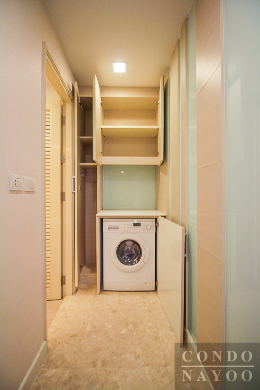 เดินเข้ามาหน้าห้องน้ำจะมีช่องวางเครื่องซักผ้า และตู้เก็บของ