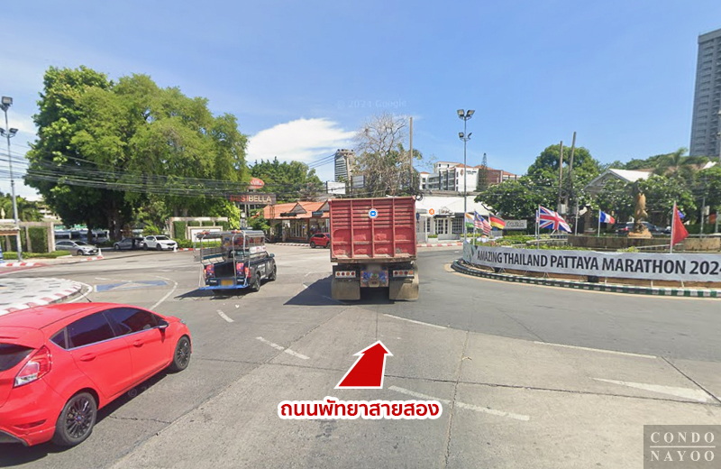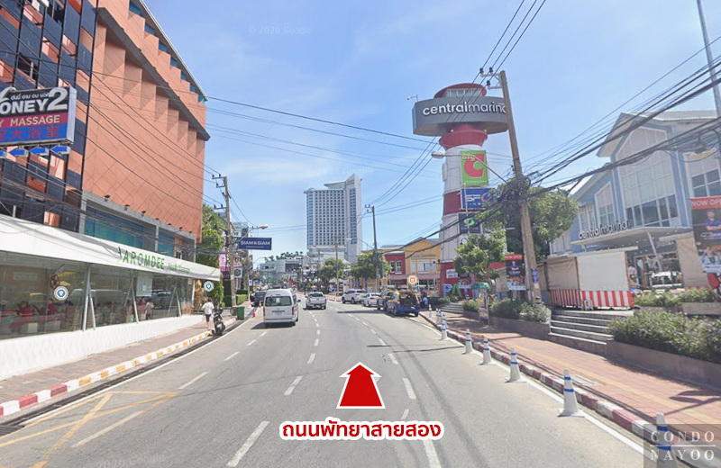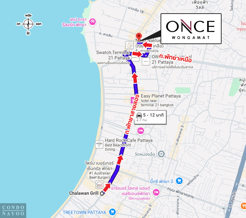 ถนนพัทยาสายสอง ⇒ ถนนพัทยาเหนือ ⇒ซอยพัทยาเหนือ 6 ⇒ ซอยนาเกลือ 33 ⇒ ถึงโครงการ Once วงศ์อมาตย์ ทางฝั่งขวามือ