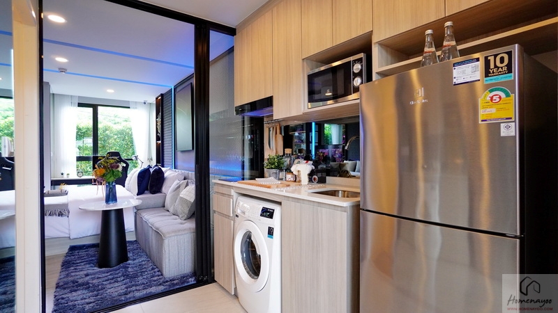 ตัวห้องขายแบบ Fully Fitted คือมีชุดครัวและชุดเฟอร์นิเจอร์มาให้แทบจะเท่า Fully Furnished กันแล้ว ซื้อเฟอร์นิเจอร์ลอยตัวตามแบบที่ชอบเพิ่มอีกไม่กี่ชิ้นก็เข้าอยู่ หรือปล่อยเช่าต่อได้เลย ทั้งยังติดแอร์ Daikin Inverter มาให้ 1-2 ตัว แล้วแต่ขนาดห้องพัก