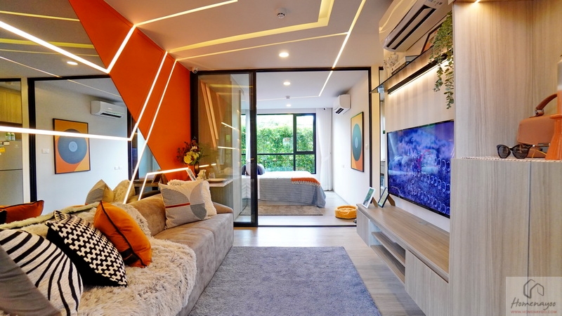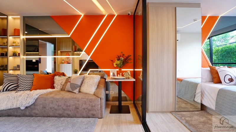♦ การออกแบบห้องพักและวัสดุ มีให้เลือกเยอะ เพื่อตอบสนองความต้องการในการอยู่อาศัยและไลฟ์สไตล์ที่แตกต่างกัน โดยจะมีให้เลือกถึง 6 แบบด้วยกัน พื้นที่ใช้สอย เริ่มต้น 23.35-34.91 ตร.ม. โดยห้อง Size เริ่มต้น ก็จะมีการกั้นประตูบานเลื่อน 3 ตอน แยกโซนให้อย่างเป็นสัด