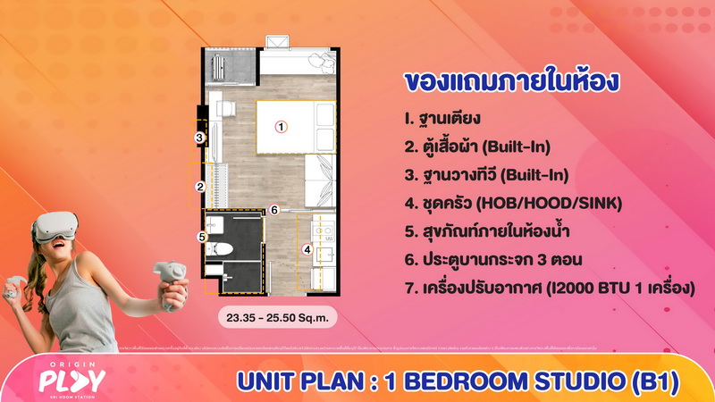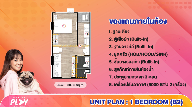 Origin Play Sri Udom Station คอนโดเลี้ยงสัตว์ได้แห่งแรกบนทำเลอุดมสุข มาพร้อมดีไซน์โดดเด่น ขนาด มีห้องพักให้เลือกหลาย TYPE ขนาดเริ่มต้น 23.35-34.91 ตร.ม. มีพื้นที่ส่วนกลางหลากหลายกว่า 30 กิจกรรม พร้อมมอบประสบการณ์ใหม่ด้วย Game Room และ Theater Room