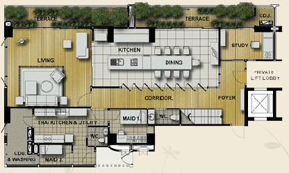 | ลักษณะห้องและขนาดห้อง | Duplex 3 ห้องนอน และ Penthouse |