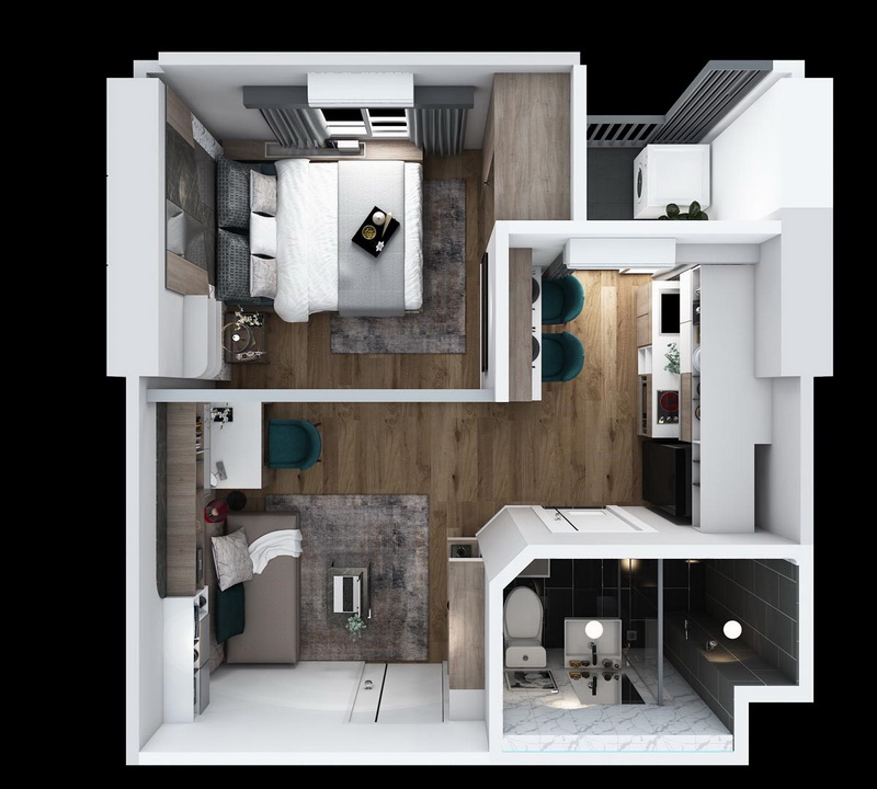 แปลนห้องพัก 1 Bedroom ขนาด 27 ตร.ม.