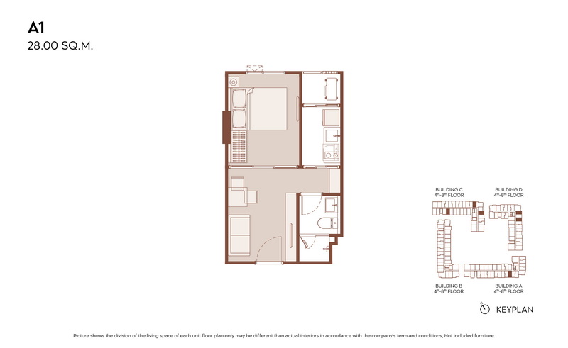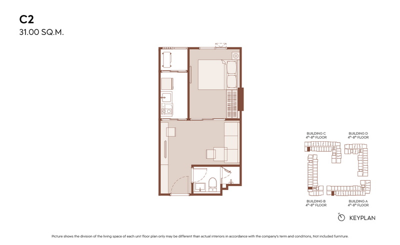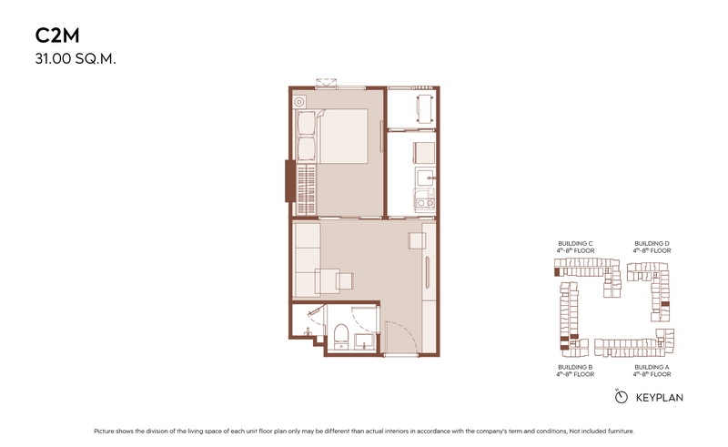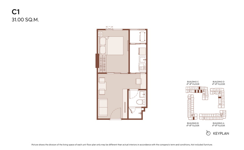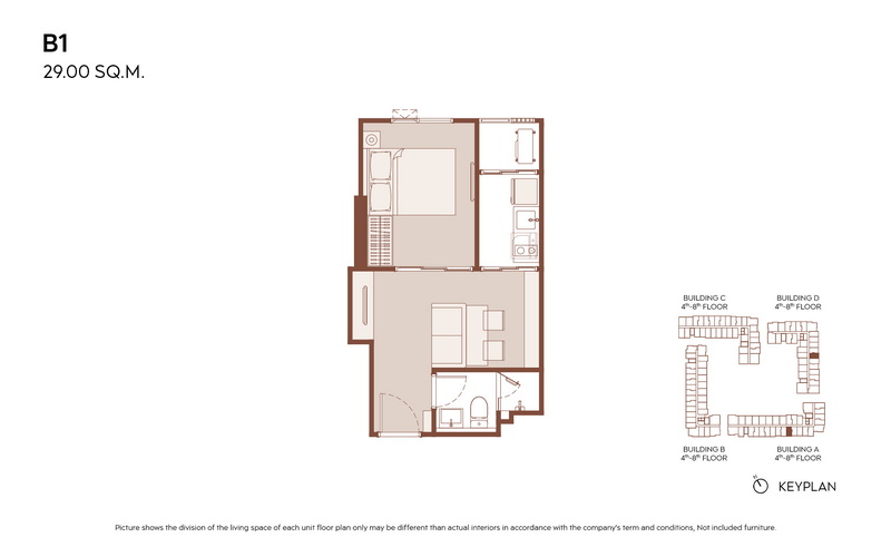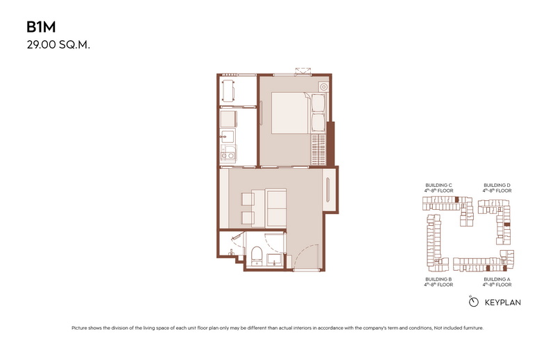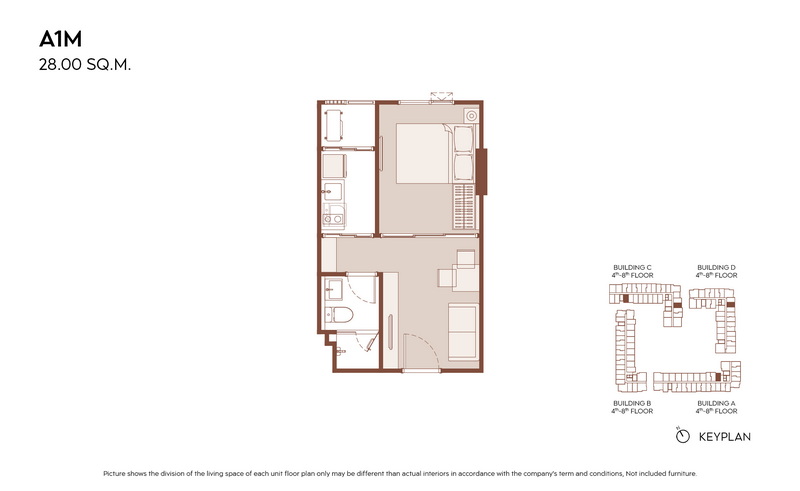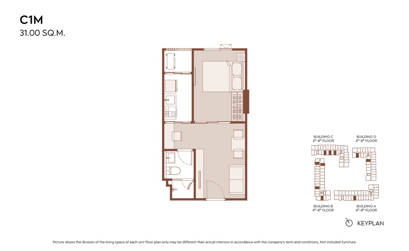1 Bedroom ขนาดเริ่มต้น 28.00-31.00 ตร.ม.
