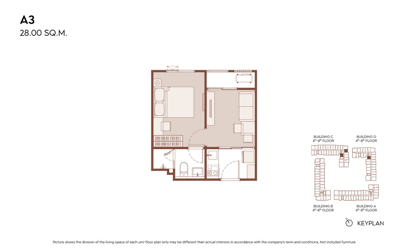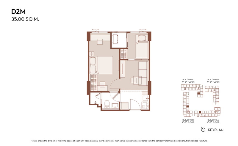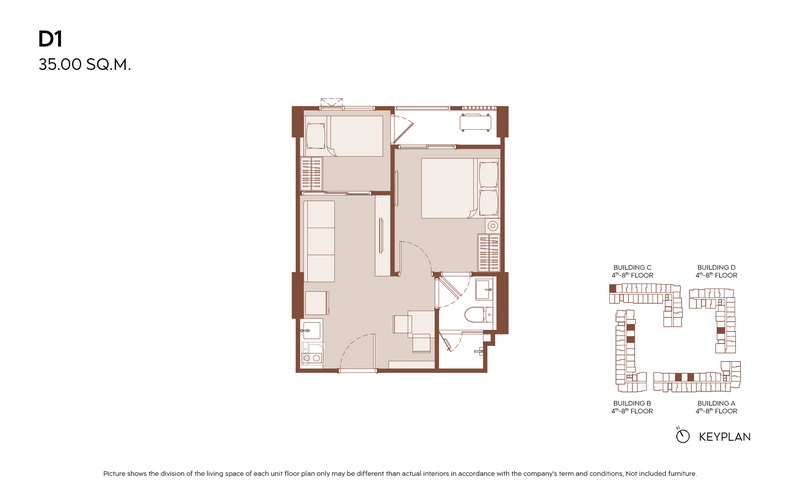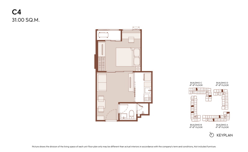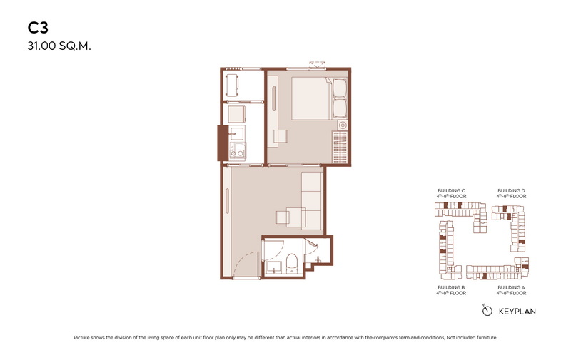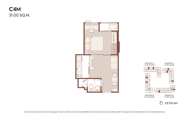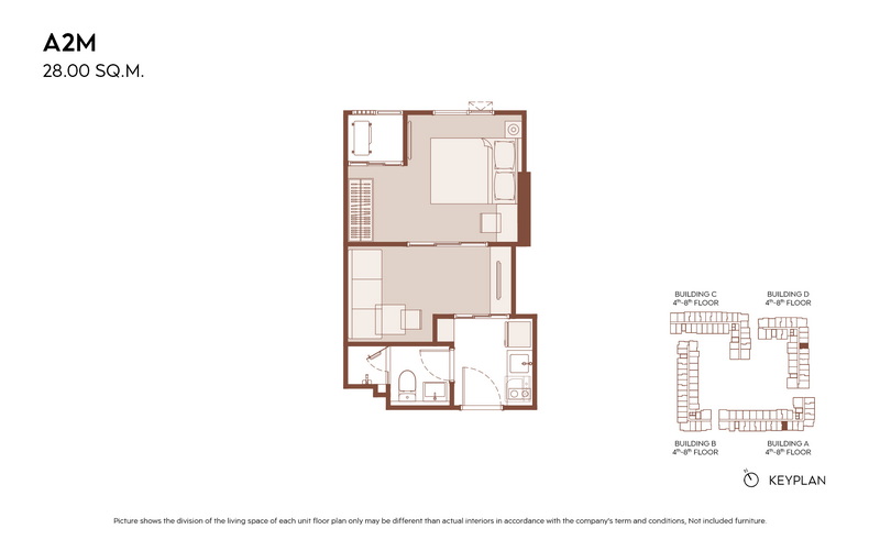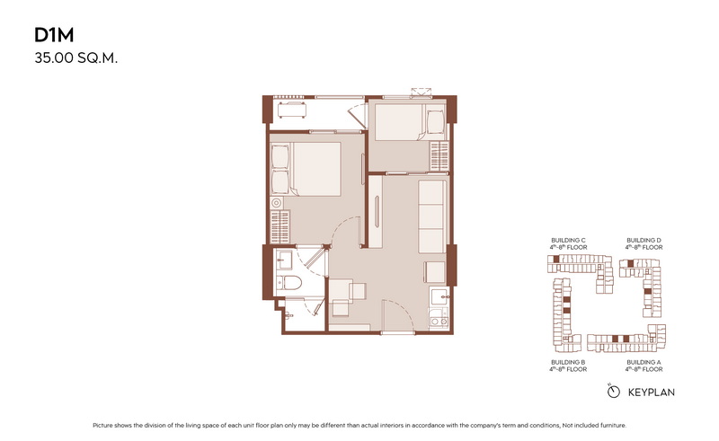 1 Bedroom ขนาดเริ่มต้น 28.00-31.00 ตร.ม.