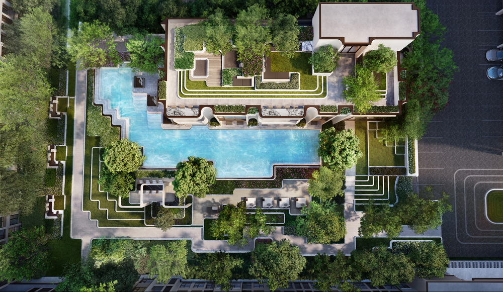 โซนสระว่ายน้ำมี Blooming Pool สำหรับพักผ่อนและว่ายสบาย ๆ แยกกับ Blooming Lap Pool สำหรับออกกำลังกายจริงจัง พร้อม Hydro Dipping Spa สำหรับคลายกล้ามเนื้อหลังเลิกงาน รวมถึง Blossom Terrace และ Blossom Lounge ที่เป็นมุมนั่งเล่นท่ามกลางสวน เหมาะกับการอ่านหนังสือหรือใช้เวลาช่วงเย็น