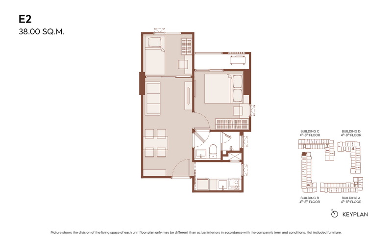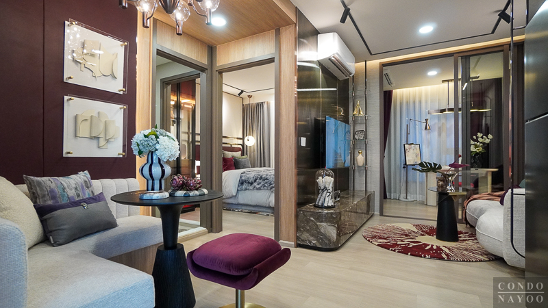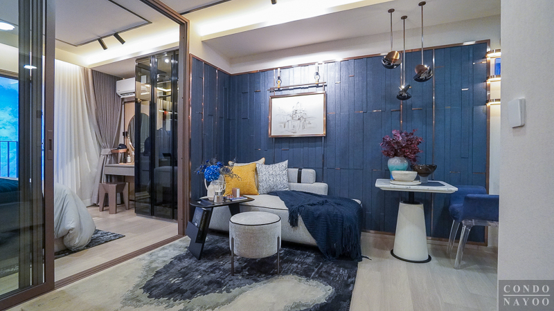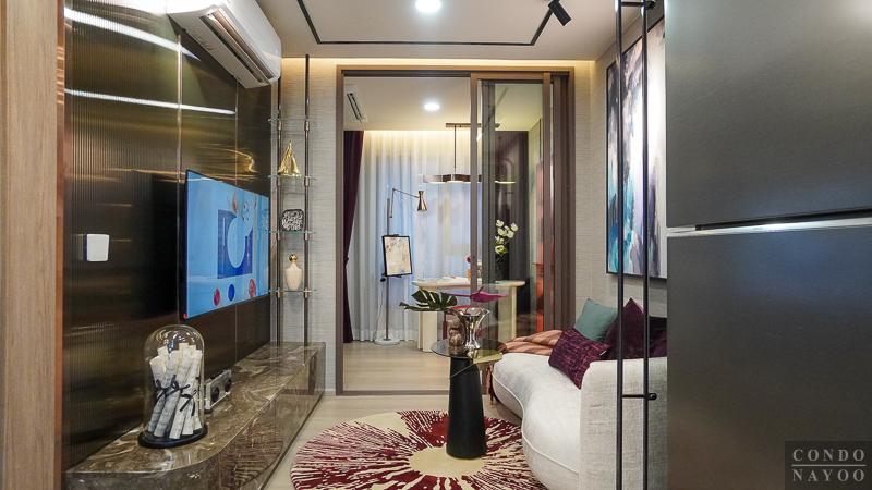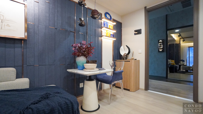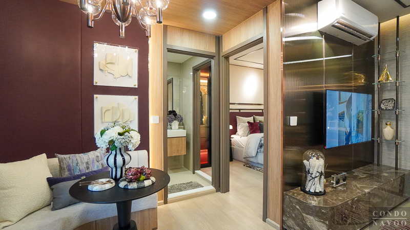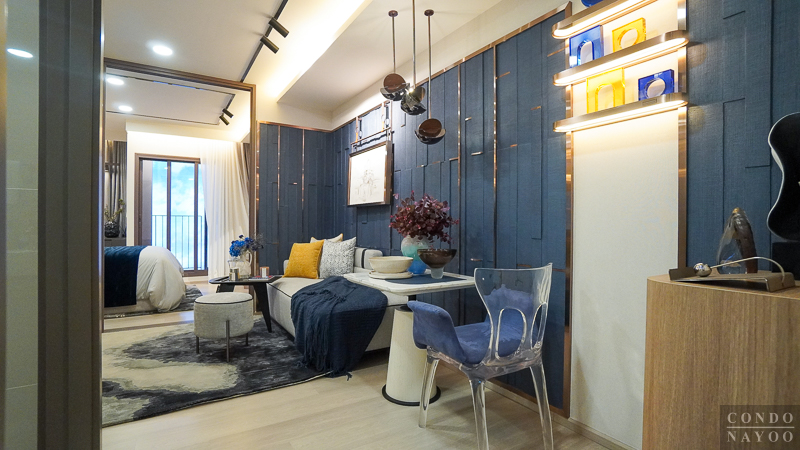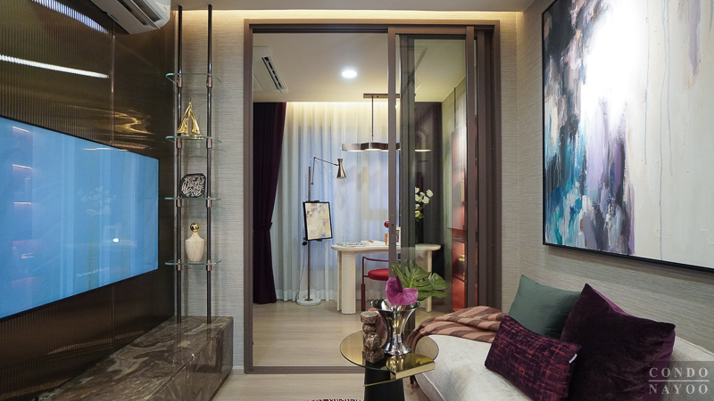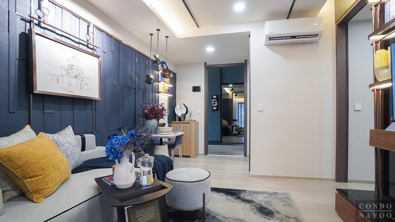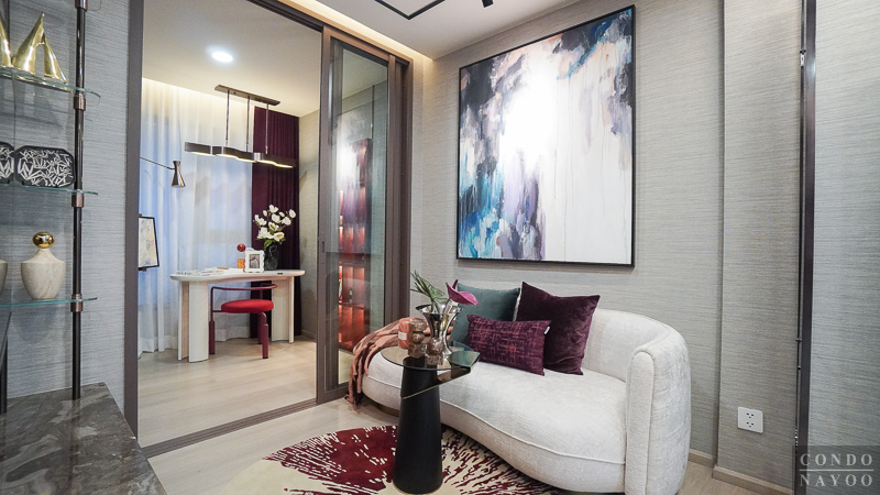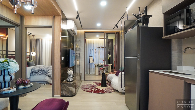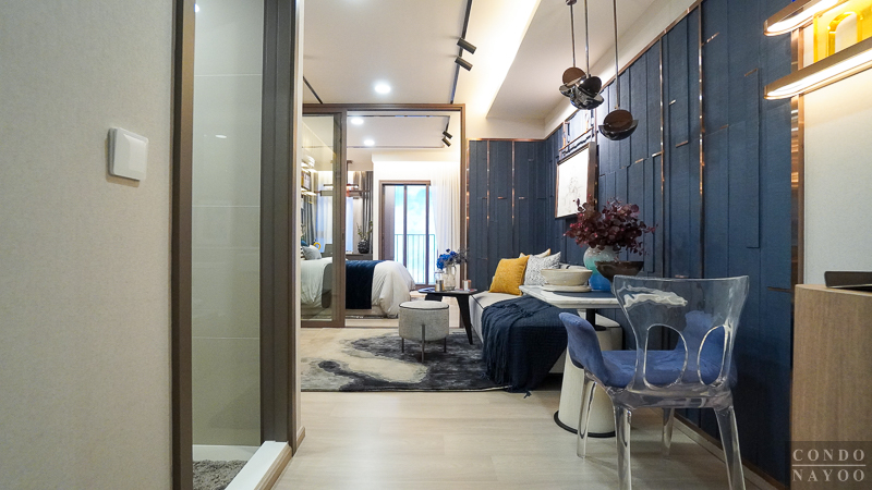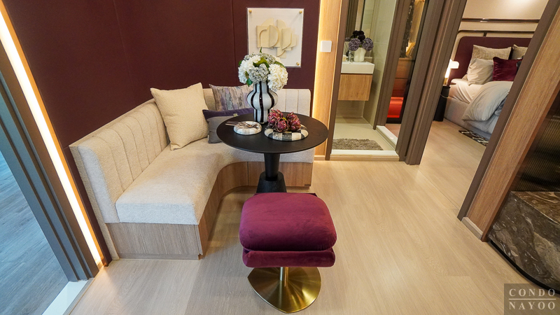 เปิดเข้ามาในห้องจะเจอกับครัวเปิดและมุมทานอาหาร ต่อเนื่องไปจะเป็นห้องนั่งเล่น และด้านในสุดจะเป็นห้อง Plus ที่มีประตูกั้นแยกห้อง และจากด้านในจะเชื่อมกับระเบียงพักผ่อนได้ด้วย