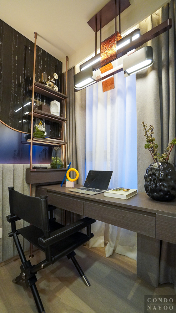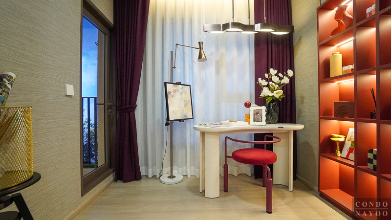 ห้องอเนกประสงค์สามารถปรับใช้งานได้ตามไลฟ์สไตล์ ไม่ว่าจะเป็นห้องทำงาน ห้องอ่านหนังสือ ห้องดูหนัง หรือทำเป็นห้องนอนเล็ก วางเตียงขนาด 3 ฟุตก็ยังใช้งานได้สบาย
