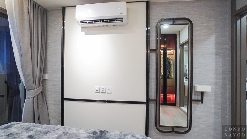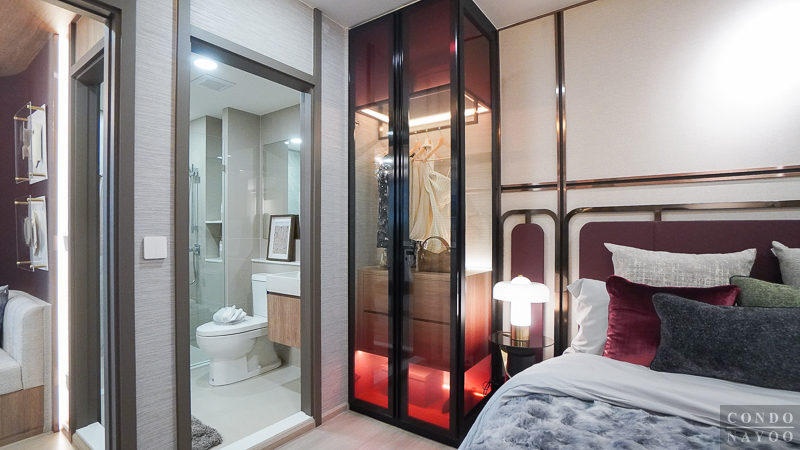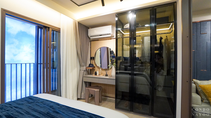 ข้างเตียงนอนติดกับทางเข้าห้องน้ำ สามารถทำเป็นมุมแต่งตัวโดยวางตู้เสื้อผ้าขนาดมาตรฐานได้แบบนี้