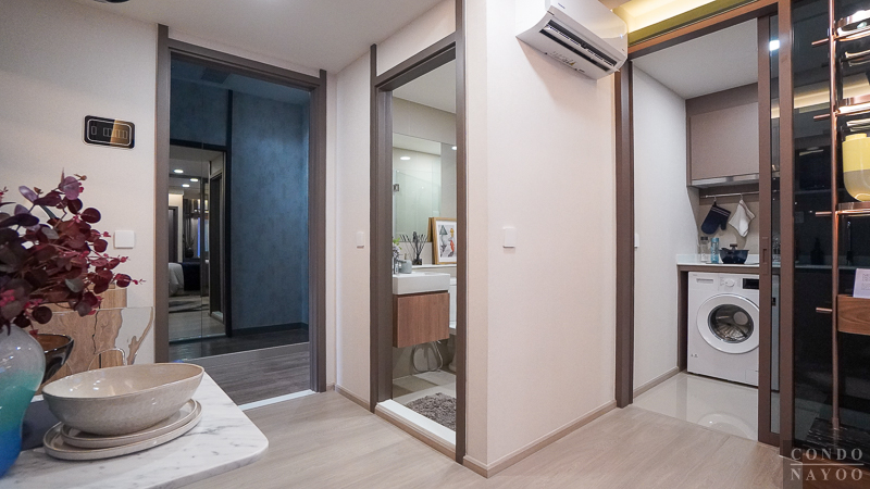 และขายแบบ Fully Fitted พร้อมชุดครัว Hob, Hood, Sink ของ Teka ฉากกั้นอาบน้ำกระจก Temper สุขภัณฑ์ Kohler และเครื่องปรับอากาศแบบ Wall Type เข้าอยู่ต่อได้ง่าย และยังเหลือพื้นที่ให้ตกแต่งเพิ่มเติมตามสไตล์ของตัวเองได้พอดี