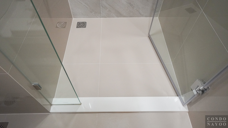 ถัดไปจะเป็นส่วนอาบน้ำ ติด Shower Screen ประตูบานสวิง แยกส่วนมาให้ พื้นที่ใช้งานด้านในให้มากว้างกำลังดี ยืนอาบน้ำได้ไม่รู้สึกอึดอัด