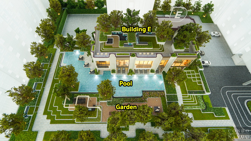 ⇒ สิ่งอำนวยความสะดวกและระบบรักษาความปลอดภัย : โครงการเป็นคอนโด Low-Rise ที่มี Standalone Extended-Life Pavilion ตั้งอยู่กลางพื้นที่ ทำหน้าที่เป็นหัวใจของส่วนกลาง พร้อมสิ่งอำนวยความสะดวกถึง 28 ฟังก์ชัน บนพื้นที่กว่า 3 ไร่ ออกแบบให้มีสวนสีเขียวแทรกทั่วโครงการและเปิดมุมมองสู่คอร์ทกลางเป็นหลัก