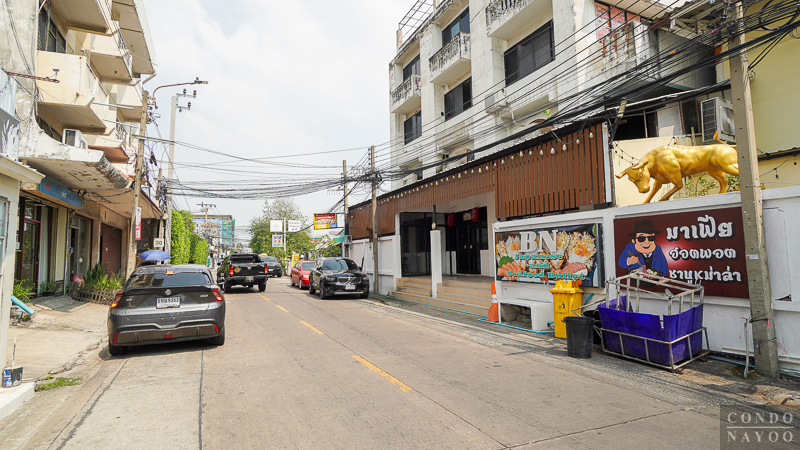 แม้หน้าซอยจะคึกคัก มีรถจักรยานยนต์และไรเดอร์สัญจรตลอดวัน แต่ข้อดีคือความสะดวกในการใช้ชีวิต และเมื่อเข้าสู่พื้นที่โครงการด้านใน บรรยากาศจะเงียบและเป็นส่วนตัวมากขึ้น ช่วยแยกความพลุกพล่านออกจากพื้นที่พักอาศัยได้ชัดเจน