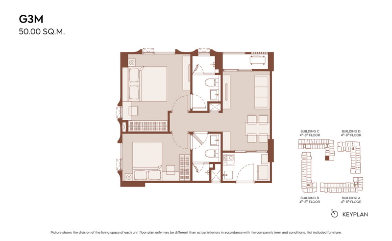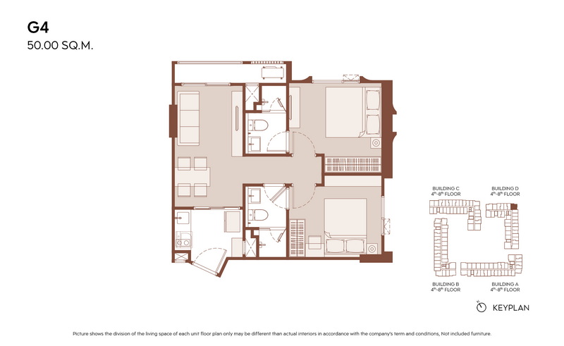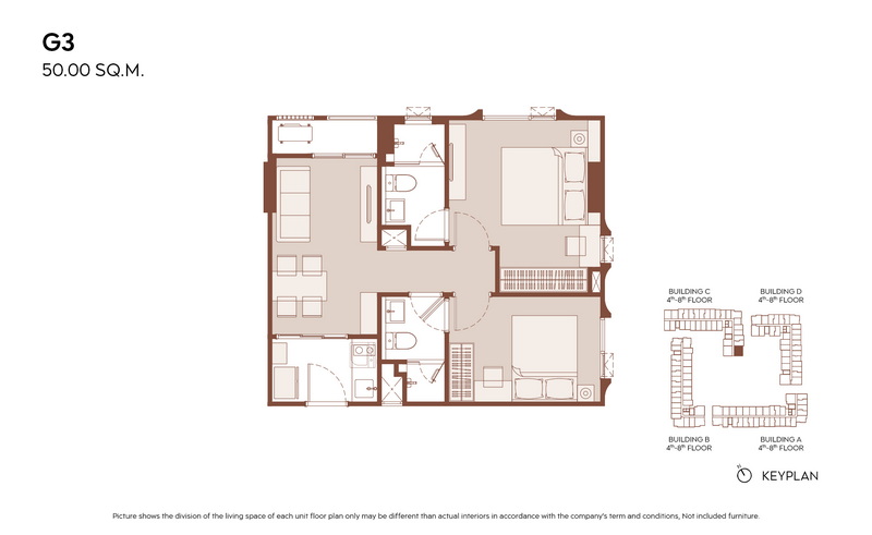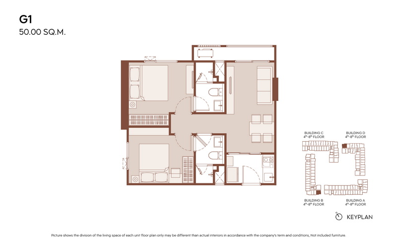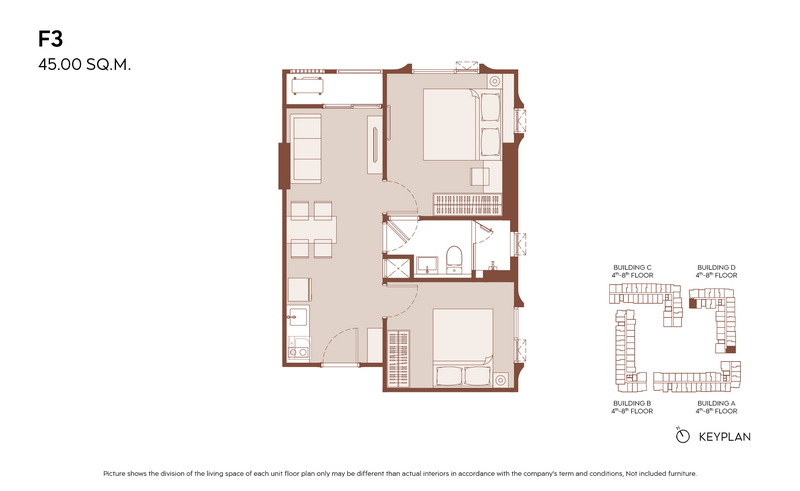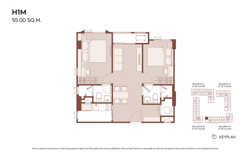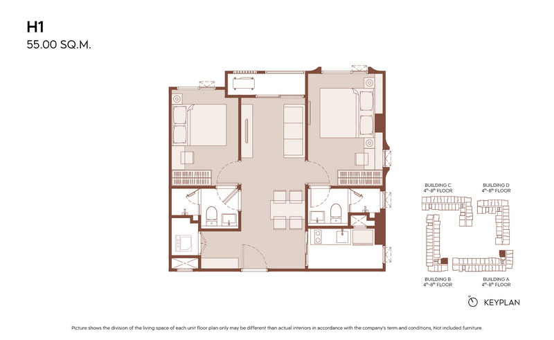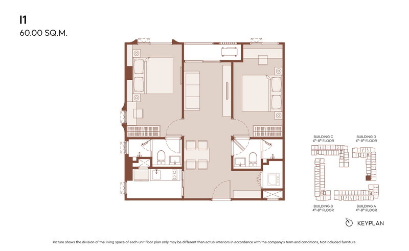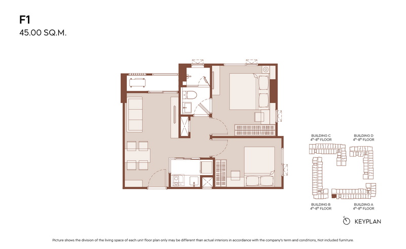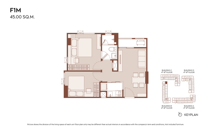 มีแบบห้องให้เลือกมากกว่า 21 แบบ เพื่อรองรับไลฟ์สไตล์ที่หลากหลาย ตั้งแต่ 1 Bedroom ประมาณ 28.00-31.00 ตร.ม., 1 Bedroom Plus ประมาณ 35.00-38.00 ตร.ม. ไปจนถึง 2 Bedrooms ประมาณ 45.00-60.00 ตร.ม.