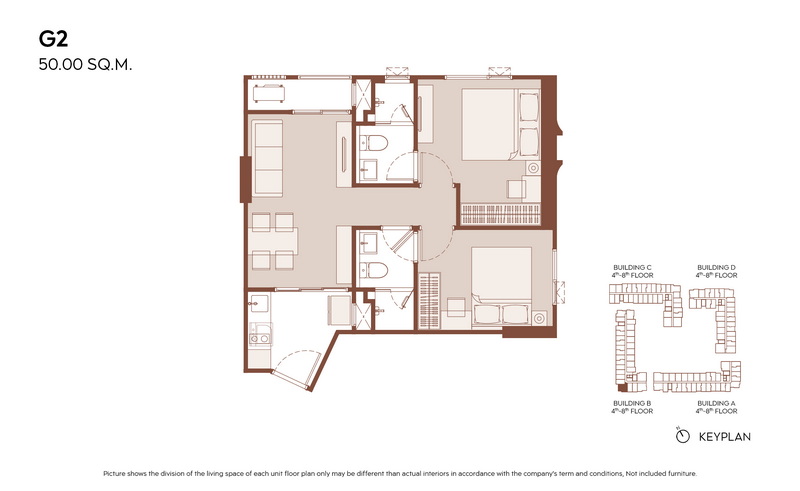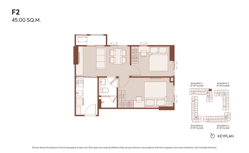 2 Bedrooms ขนาดเริ่มต้น 45.00-60.00 ตร.ม.