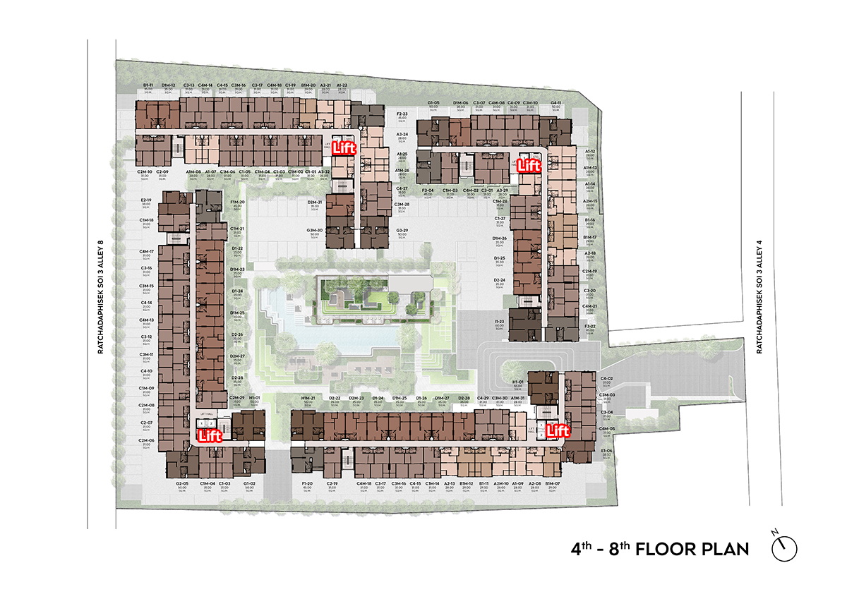🌟 ไลฟ์ รัชดา-พระราม 9 พัฒนาบนที่ดินประมาณ 8-1-65 ไร่ เป็นคอนโด Low-Rise สูง 8 ชั้น 4 อาคาร พร้อมอาคารสโมสร 3 ชั้น รวม 866 ยูนิต และร้านค้า 1 ยูนิต