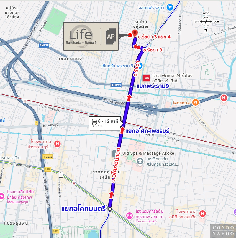 ⇒ การเดินทางด้วยรถส่วนตัว : สามารถเลือกเส้นทางได้หลากหลาย ทั้งรัชดาภิเษก พระราม 9 ดินแดง ประชาสงเคราะห์ และเชื่อมไปวิภาวดี รวมถึงขึ้นทางด่วนหลักได้ไม่ยาก เพียงต้องเผื่อเวลาช่วงเร่งด่วนตามสภาพซอยเมือง ภาพรวมคือสามารถเดินทางไปโซนต่าง ๆ ได้สะดวก เข้าอโศกได้ง่าย เพียง 5-10 นาที *และยังเชื่อมต่อไป CBD สาทร-สีลมได้ไม่เกินครึ่งชม. ด้วยค่ะ