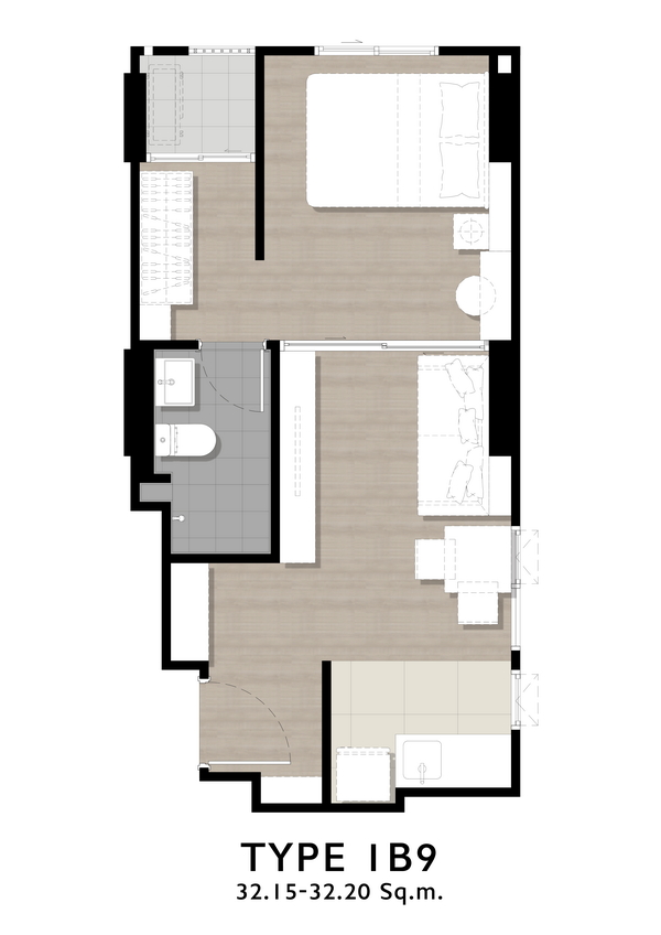 🔸 1 Bedroom ขนาดประมาณ 32.15-32.20 ตร.ม.