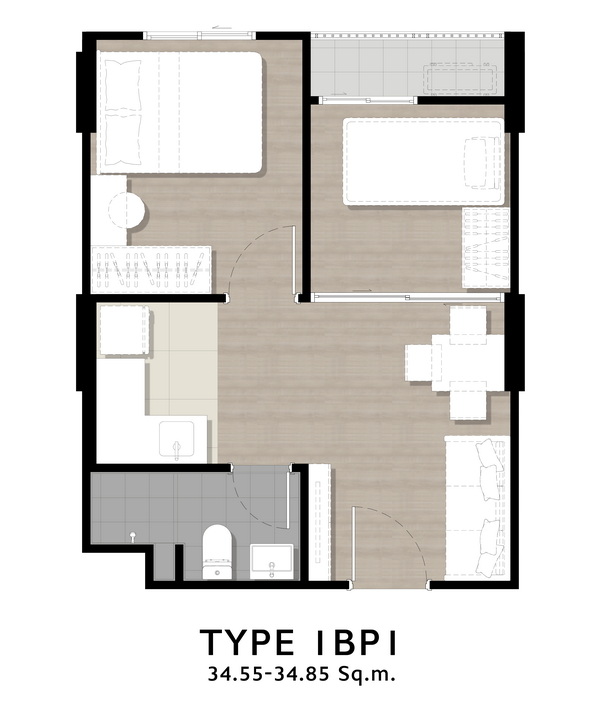 🔸 1 Bedroom Plus ขนาดประมาณ 34.55-34.85 ตร.ม.