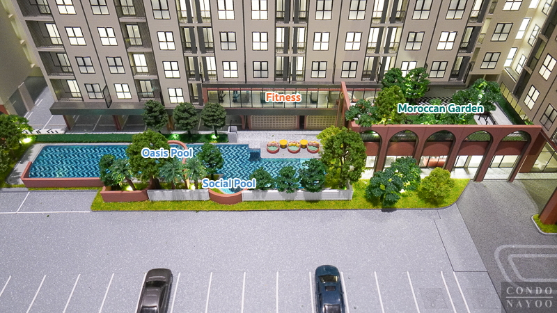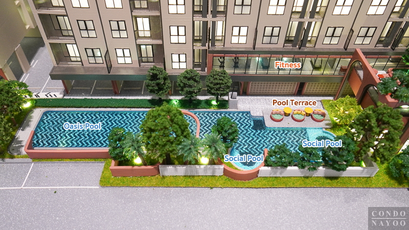 ทั้งยังมี Oasis Pool สระว่ายน้ำขนาด Half Olympic ท่ามกลางพื้นที่สีเขียว ภายนอกยังมีสวนพักผ่อนที่ออกแบบเป็นธีมสวยงาม สร้างบรรยากาศร่มรื่นให้ได้ผ่อนคลายทุกวัน และเพื่อความมั่นใจของผู้อยู่อาศัย โครงการติดตั้งระบบรักษาความปลอดภัยมาตรฐาน ทั้งเจ้าหน้าที่ รปภ. 24 ชม. กล้อง CCTV รอบโครงการ และระบบเข้า-ออกด้วย Key Card Access ทำให้ผู้อยู่อาศัยมั่นใจได้ในทุก ๆ วัน