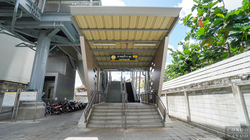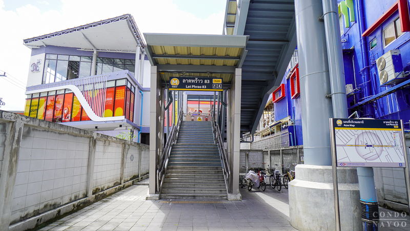 ⇒ การเดินทางโดยรถไฟฟ้าและรถสาธารณะ : หนึ่งในจุดแข็งที่สุดของทำเลนี้คือการอยู่ใกล้รถไฟฟ้าสายสีเหลือง สถานีลาดพร้าว 83 เพียง 250 ม.* เรียกว่าเดินถึงได้สบาย ๆ และจากสถานีนี้ยังสามารถเชื่อมต่อเข้าสู่ MRT สายสีน้ำเงินที่สถานีลาดพร้าว
