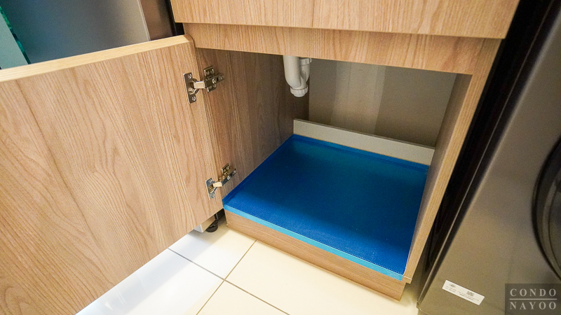 ด้านล่างมีตู้เก็บของบานเปิดใต้ซิงค์ล้างจานให้อีก 1 ตู้