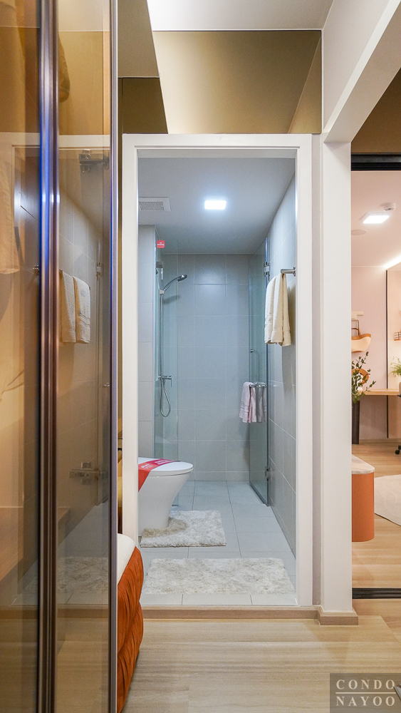 โดยใน Type ใหม่ยังเพิ่ม Walk-in Closet มาให้ด้วย จุดเด่นอีกอย่างคือช่องแสงขนาดใหญ่ที่ช่วยให้ห้องรับวิวและแสงธรรมชาติได้เต็มที่ พร้อมห้องน้ำที่แยกโซนแห้ง-เปียกชัดเจน วัสดุที่ใช้เน้นความเรียบง่าย ทนทาน และตอบโจทย์การใช้งานจริง