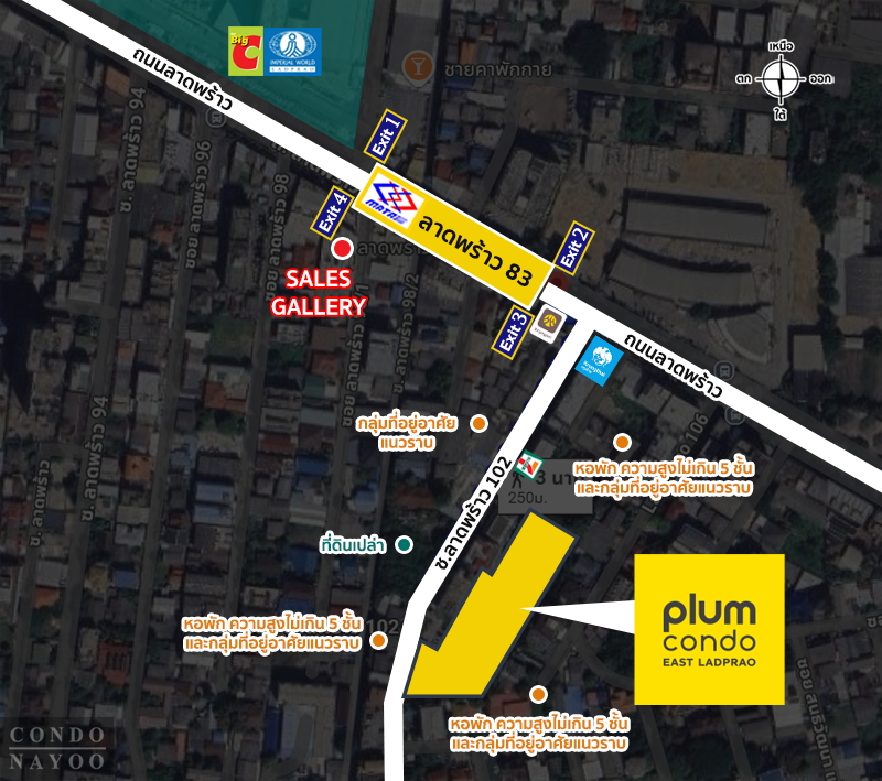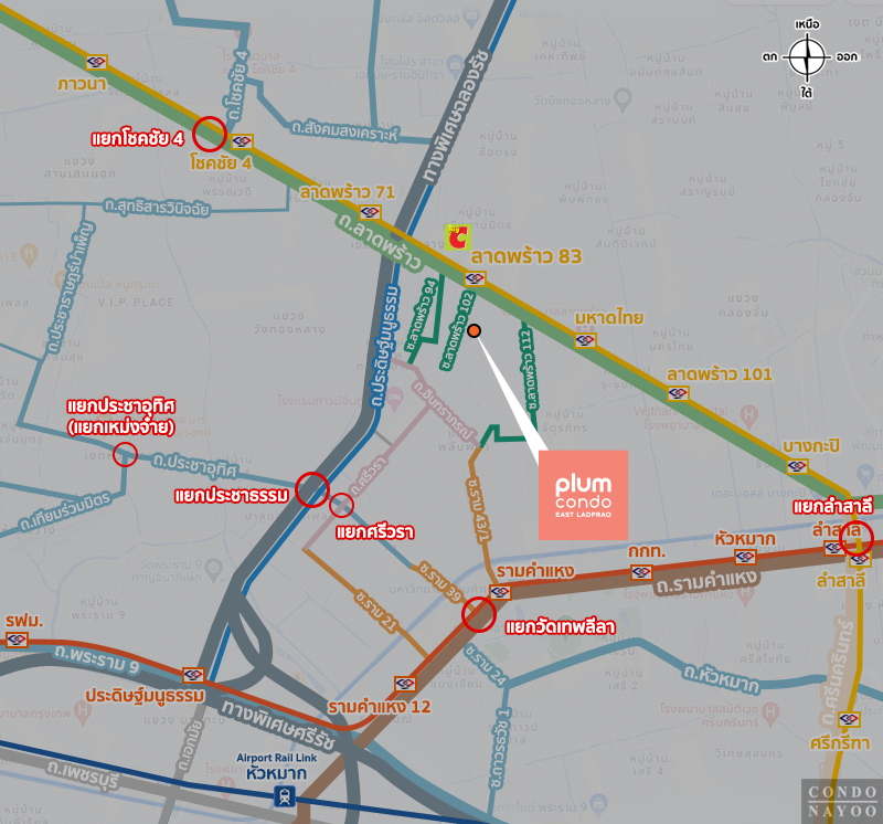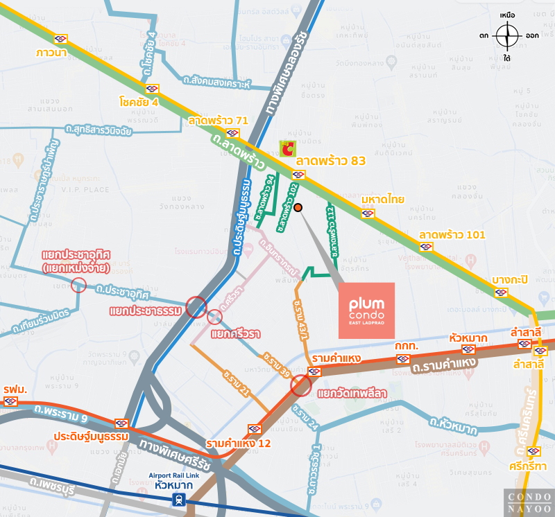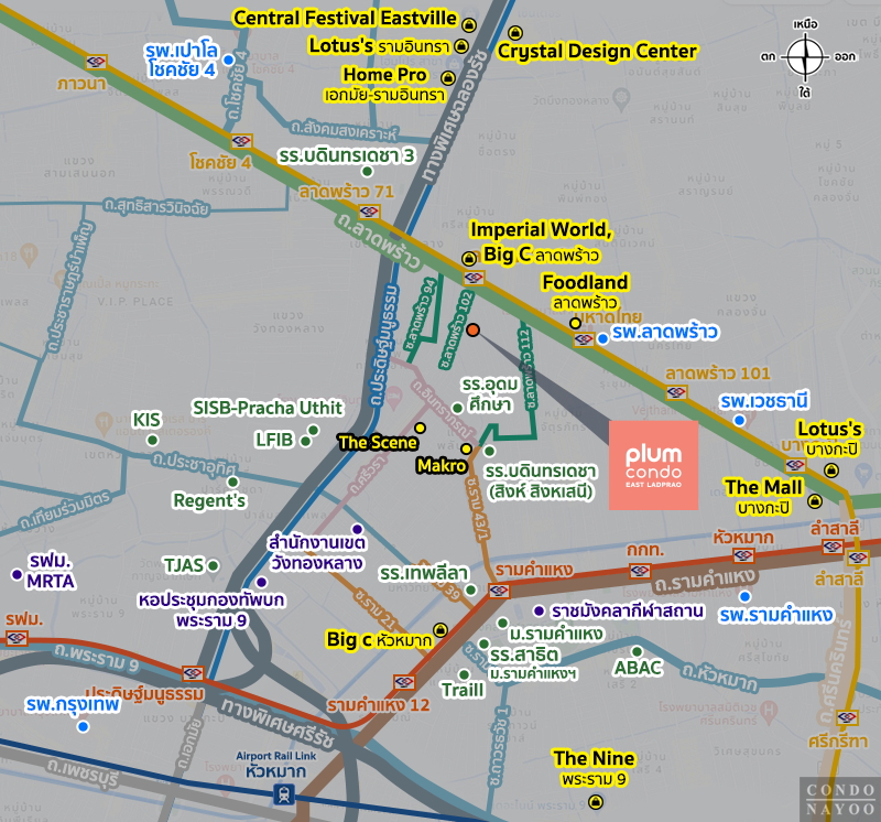 ⇒ ทำเลที่ตั้งโครงการ : Plum Condo East ลาดพร้าว คอนโดใหม่จากพฤกษา ตั้งอยู่ในซอยลาดพร้าว 102 ทำเลที่ให้ทั้งความสงบและความสะดวกในเวลาเดียวกัน สามารถเชื่อมต่อออกสู่ถนนสายหลักได้หลายเส้น ทั้งถนนลาดพร้าว ถนนรามคำแหง ถนนเลียบด่วนรามอินทรา และถนนพระราม 9 ได้ง่าย
