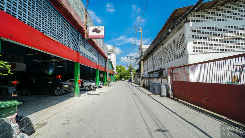 ช่วงต้น ๆ ซอย จะมีทาวน์โฮม บ้านเดี่ยว และอู่ซ่อมรถยนต์ตั้งอยู่
