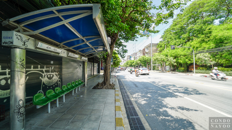 หน้าปากทางจะมีป้ายรถเมล์ให้ใช้งาน