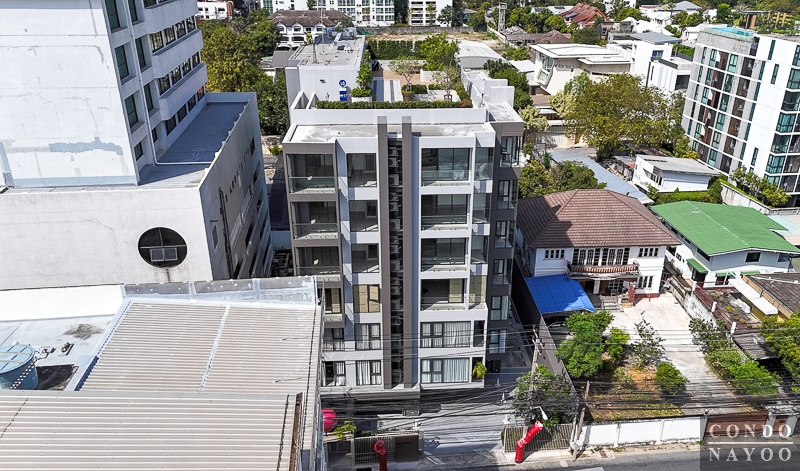 การออกแบบโครงการ, แบบบ้าน และวัสดุ โครงการเป็น Low-Rise Apartment 7 ชั้น ขนาดเล็กที่เน้นการอยู่อาศัยแบบ Private ทั้งโครงการมีเพียง 18 ยูนิตเท่านั้น หรือมีเพียง 3 ห้อง/ชั้น โดยจะเน้นห้องพักอาศัยขนาดใหญ่แบบ 2-3 Bedroom พื้นที่ใช้สอย 86.00-137.50 ตร.ม. เพื่อรองรับการอยู่อาศัยแบบเป็นครอบครัว ถือเป็นขนาดห้องที่หายากมากในทำเลนี้ และยังเป็นโครงการที่สามารถเลี้ยงแมวได้ด้วย
