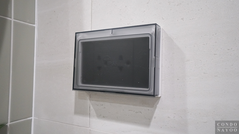 ผนังด้านข้างอ่างติดปลั๊กไฟกันน้ำให้ 1 จุด รองรับการเสียบใช้ไดร์เป่าผม เครื่องม้วนผม หรือเสียบ Gadget อื่น ๆ ในห้องน้ำได้