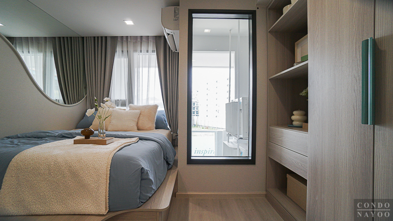 ห้องนี้จะได้ฐานเตียงนอน 5 ฟุต แบบ Built-in พร้อมลิ้นชักเก็บของใต้เตียงอีก 2 ช่อง