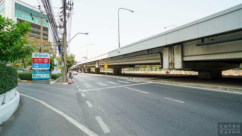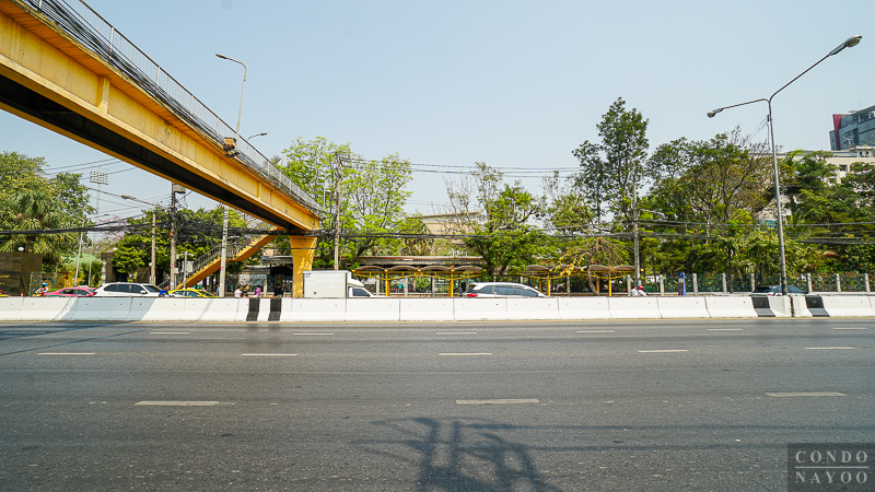 มองออกไปฝั่งถนน จะเป็นสะพานข้ามแยกบางเขน