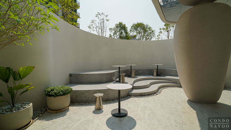 โซนนี้จะได้โซฟาและโต๊ะกลางดีไซน์พิเศษมาจาก THINKK Studio โดยรูปทรงของเฟอร์นิเจอร์จะได้แรงบันดาลใจมาจาก Pebbles มีเส้นสายที่อ่อนโยนเป็นธรรมชาติ