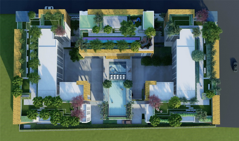 มองไปฝั่งอาคาร B มีพื้นที่พักผ่อนริมสระเช่นกัน