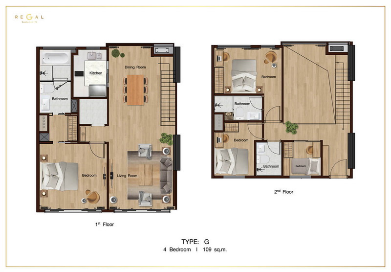 TYPE G : 4 Bedrooms ขนาด 109.00 ตร.ม.