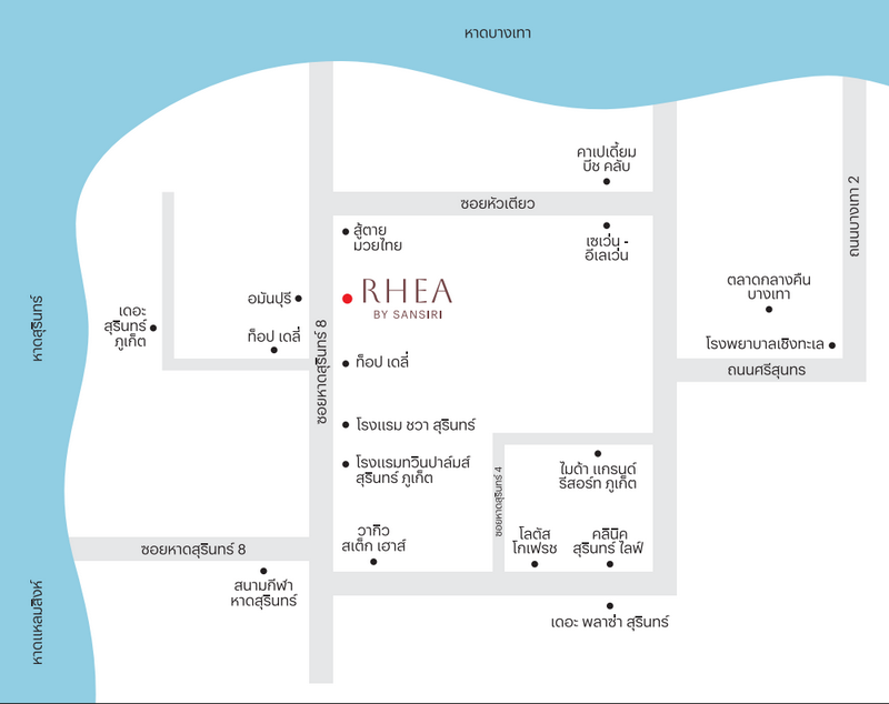 RHEA by Sansiri คอนโดใหม่สไตล์รีสอร์ตเลี้ยงสัตว์ได้ จาก Sansiri ที่ตั้งโครงการอยู่บน ซ.หาดสุรินทร์ 8 ต.เชิงทะเล อ.ถลาง จ.ภูเก็ต ทำเลที่ ‘เชื่อมต่อ’ 2 หาด ทั้ง หาดสุรินทร์ และ หาดบางเทา เชื่อมต่อสนามบินภูเก็ตได้ ประมาณ 40 นาที*