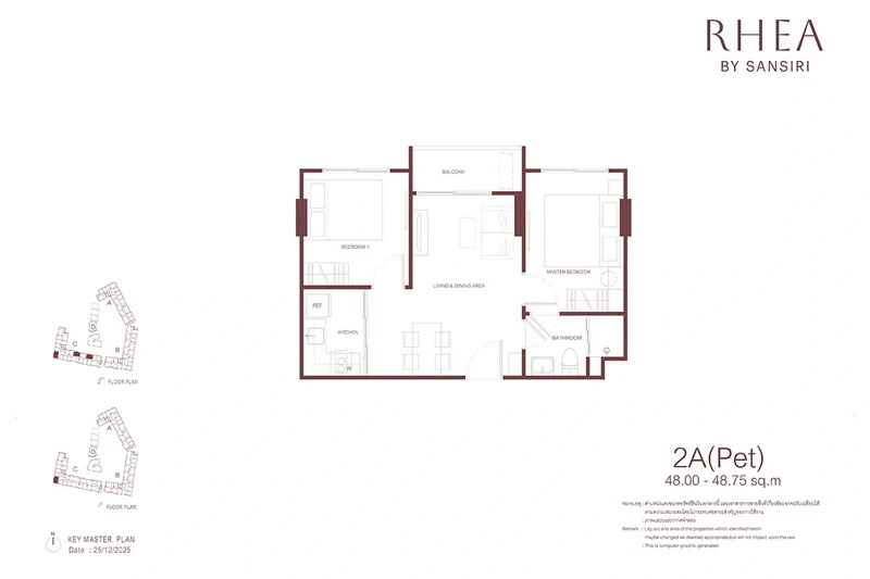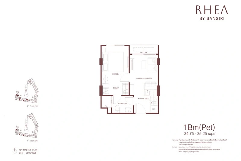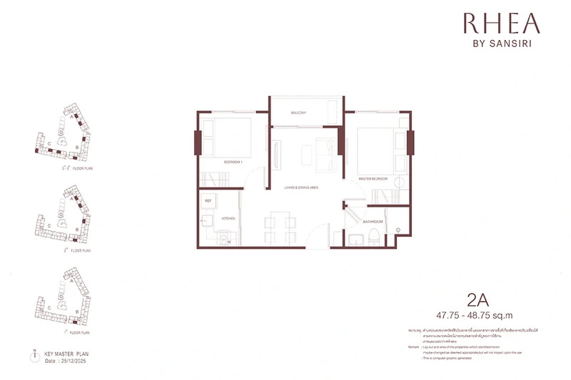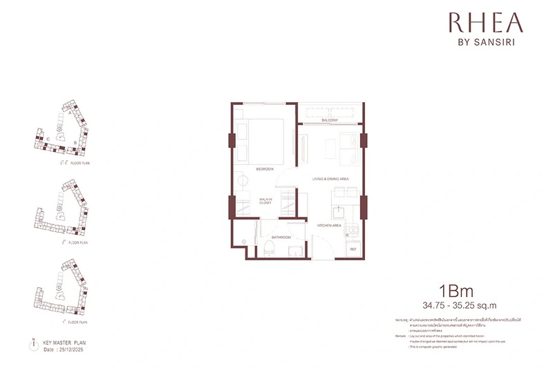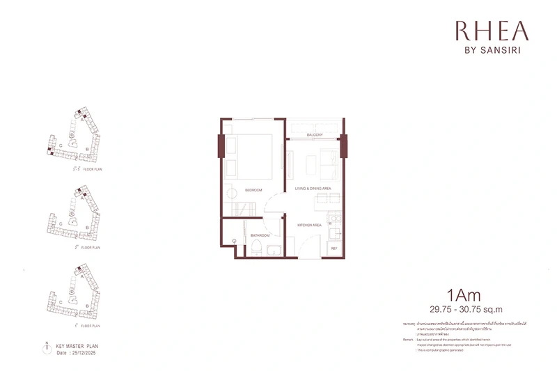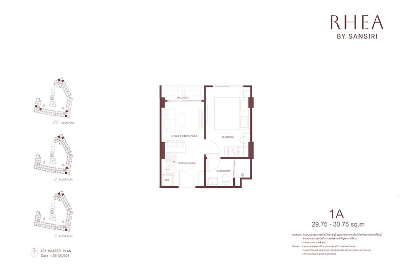 โครงการ RHEA by Sansiri มีห้องพักให้เลือก 3 แบบหลัก ๆ ได้แก่
