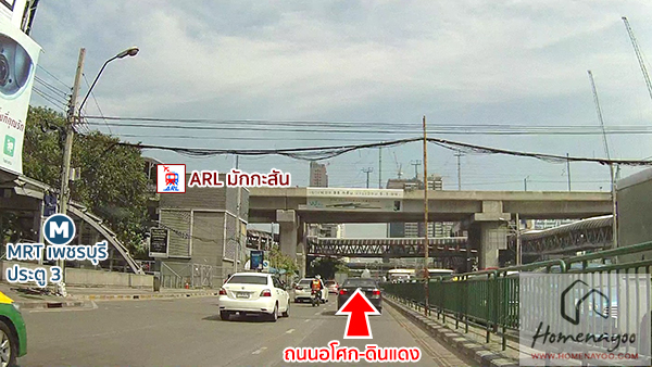 เข้าสู่ถนนอโศก-ดินแดง ผ่าน MRT เพชรบุรี และ ARL มักกะสัน
