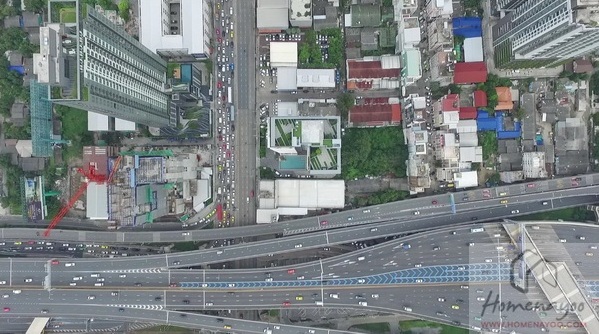 มุมสูงฝั่งหน้าโครงการ ทิศตะวันตก ติดถนนอโศก-ดินแดง ระหว่างถนนจตุรทิศ และ ถนนพระราม 9, ถนนดินแดง